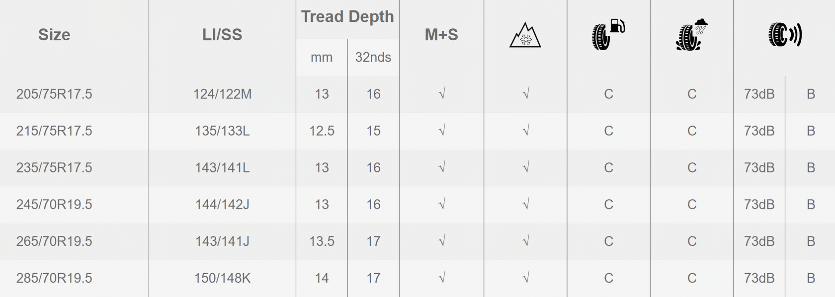 Оптимизированный рисунок протектора обеспечивает отличную управляемость и сцепление как на сухом, так и на мокром покрытии в изменчивых дорожных условиях региональных грузоперевозок.